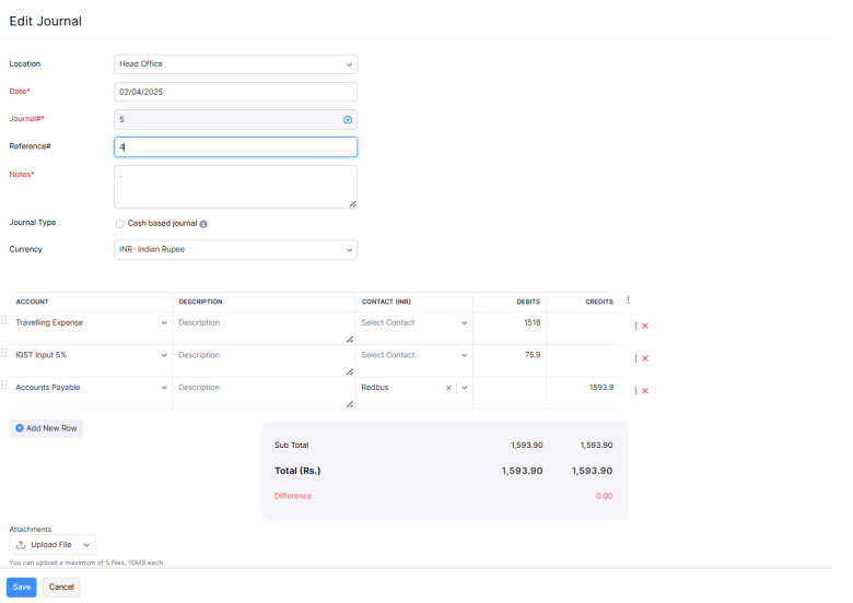Account Receivable and Accounts Payable nature of entries that are passed as journals in tally are brought as Journal in Zoho as well.