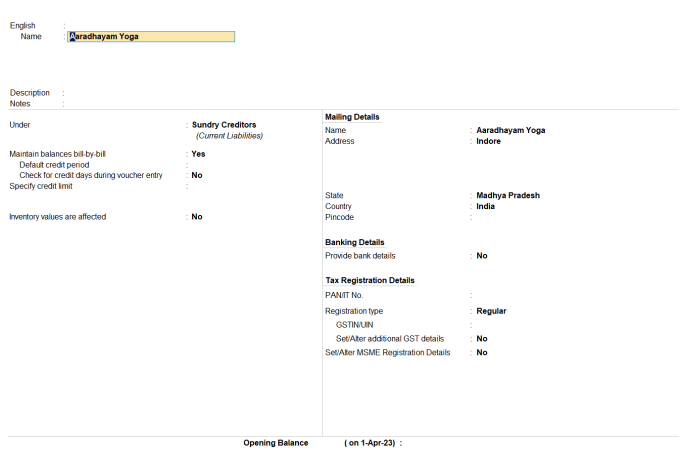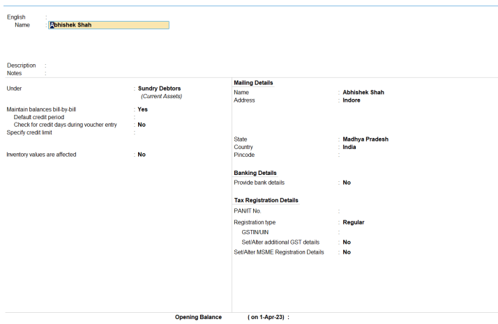 17. Account Receivable and Accounts Payable nature Journal entries in Tally