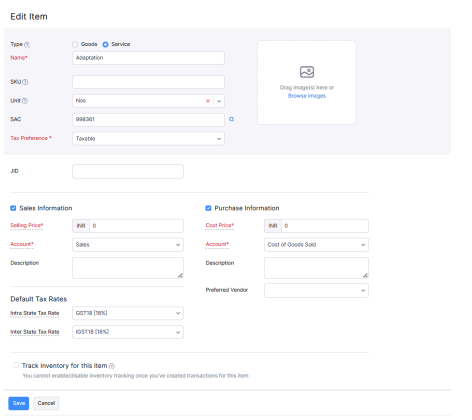 Inventory Items: All products and stock items in Tally are mapped to Inventory Items in Zoho Books.