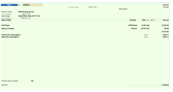 | Sales Voucher | Sales Invoice | Invoice created for sales of goods/services. |